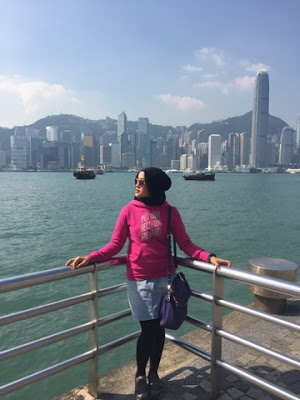 Sejujurnya outfit agak salah nih, tapi berhubung aku berhijab jadi tak papa memang harus tertutup semuanya. Don't care panas yanga penting gaya hahaha. Info awalnya katanya HK sudah memasuki musim semi yah udaranya sejuk gitu lah ternyata ngok!